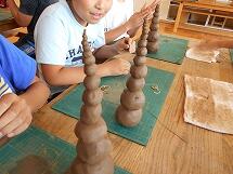 初めて土粘土に触れる子が多く、楽しそうに活動していました。土粘土の重量感や質感を感じ取りながらのびのびと活動する様子が見られました。