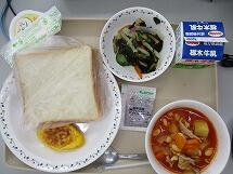 今日の給食のメニューは、「ピザトースト 牛乳 とちまるくん卵焼き キャベツときゅうりのサラダ わかめスープ」でした。