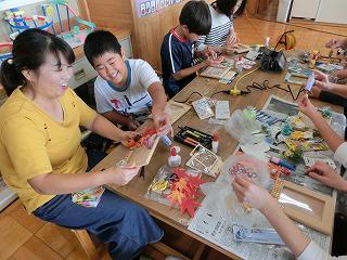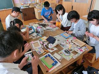それぞれ準備した材料でオリジナルの写真立てを作りました。