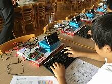 先週5年生が体験した、栃木工業高校の皆さんによる「プログラミング教室」を6年生で行いました。はじめは慣れないタイピングに苦戦する様子も見られましたが、自分が出した指示通りにランプがついたり消えたりすることに驚き、夢中で活動に取り組んでいました。
