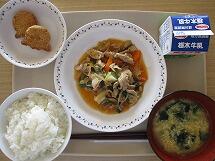 今日の給食のメニューは、「ご飯 牛乳 豚キムチ丼の具 たこナゲット とうもろこしのスープ」でした。
