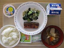今日の給食のメニューは、「ご飯・わかめふりかけ 牛乳 サンマの塩焼き 磯香あえ けんちん汁 十五夜デザート」でした。
