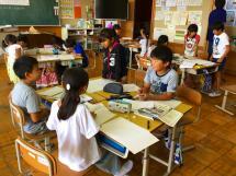 6年生は今、外国語科で夏休みの思い出を伝えるしかたを学習しています。過去の思い出について伝えるということで、「I went to~」や「I enjoyed~」といった過去形も練習しています。ただただ、繰り返して唱えるのではなく、ゲームなどを通して言葉の練習をすることで、楽しく身に付けることができているようです。これからも楽しみながら英語が身近なものになるよう指導していきたいと思います。