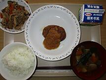 今日の給食のメニューは、「ご飯 牛乳 きのこご飯の具 和風おろしハンバーグ いものこ汁」でした。