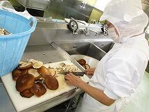 きのこは、そんな秋においしい食品です。きのこご飯の具には、しいたけ、えのき茸、たもぎ茸が入っています。写真のように、10cm以上もあるとても大きなしいたけは、栃木市産です。きのこごはんの具をご飯に混ぜて食べてください。