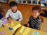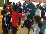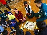 その後,選手のみなさんと,昔からの遊び(けん玉・お手玉・ふくわらい・わなげ・ビー玉・だるまおとし・おはじき・ベーゴマ)と折り紙で交流をしました。