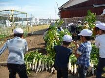 2年生のみんなは、大根を大切にかかえて持ち帰りました。