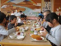 今日は、北海道の郷土料理です。北海道で唐揚げのことを「ザンギ」といいます。今日は、鶏肉ではなく、鮭を油で揚げた「鮭ザンギ」にしました。みそ汁に入っている、じゃが芋・玉ねぎも北海道が生産量日本一です。味わって食べて下さい。