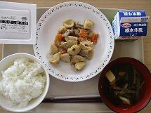 里芋は、中心に「親いも」ができ、そこから「子いも」、さらに周りに「孫いも」ができることから、子宝に恵まれて家が代々栄えることを願う、縁起の良い食材といわれています。今日は、里芋の肉味噌煮です。残さず食べて下さい。