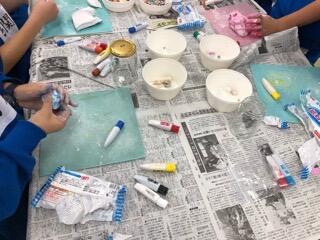 5校時は,1~5年生のクラスで一緒に活動。6校時は4~6年生がクラブ活動(工作・イラスト,ダンス,手芸,パソコン,スポーツ)で交流しました。