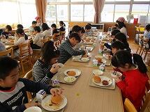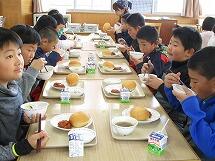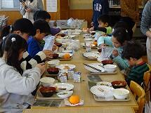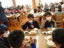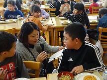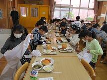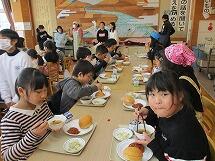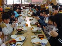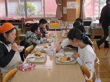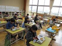 また、インフルエンザが流行しており、欠席者の多い3年と6年は、他の学年への感染を防ぐため、いつものランチルームではなく、それぞれの教室で給食を食べました。先生方に協力していただき、食器や給食の食缶は階段をつかって運び、オープンスペースで配膳をしました。給食を食べる時は、グループを作らず、全員前を向いて食べています。おしゃべりせず、静かに給食を食べていました。早く元気になって、またみんなで一緒にランチルームで給食が食べられるといいですね。