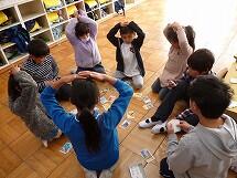 グループ毎に、カルタ、トランプ、すごろく、だるま落とし、けん玉、おはじき、ビー玉の中から遊びたい物を2つ選び、仲良く遊ぶことができました。