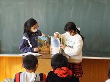 次に1年生からのプレゼントです。手作りバックをもらってとてもうれしそうでした。