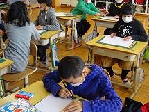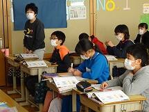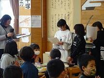 4月から1年生になる友達が、2年生教室に来てくれました。2年生は、きりなしうたの詩の群読をしたり千塚小学校の紹介をしたりしました。