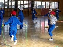全校で短なわを使ってなわとびの練習です。