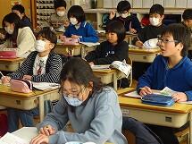 図書委員会の皆さんが、1年生から4年生までの教室に行って、読み聞かせを行いました。子どもたちは、とても熱心に読み聞かせに聞き入っています。