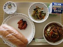 今日の給食のメニューは、「焼きそばパン 牛乳 照り焼きチキン おひたし ヨーグルト」でした。