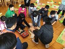 初めは、胸骨圧迫に苦戦している児童が目立ちましたがだんだんコツを掴んできた様子でした。
