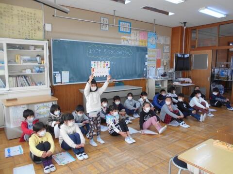 4月から1年生になる友達が、2年生教室に来てくれました。2年生は、きりなしうたの詩の群読をしたり千塚小学校の紹介をしたりしました。