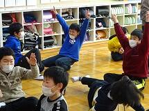 生活科「ふゆをたのしく」の学習で、昔の遊びをしています。今日は、保護者の方に御協力いただき、体育館でこまやはねつき、折り紙、おはじき、けん玉、あやとり、お手玉等を体験しました。最後に、お礼をかねてダンス「YMCA」を元気に踊りました。