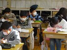 インフルエンザ対策のため、欠席の多い2年生はランチルームではなく、教室で前を向いて給食を食べています。ランチルームで全校一緒に給食が食べられるようになることを、他学年も待っていますよ。早く元気になるといいですね。
