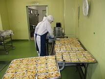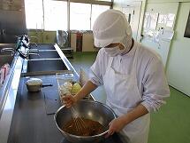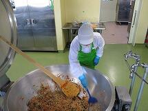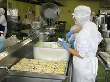 今日は、調理員さんの手作りグラタンです。子供から大人まで大人気のグラタンは、大きな鍋でホワイトルウから手作りし、それを1個1個ていねいにカップに入れて、オーブンで焼いています。調理員さんは、みなさんに「おいしいものを食べてほしい」という気持ちで頑張って作っています。愛情たっぷりのグラタンを味わっていただきましょう。