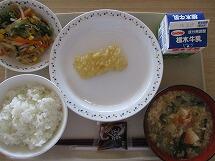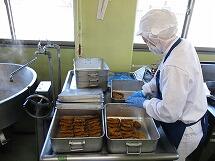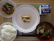 今日は、いわしのかば焼きです。かば焼きと言っていますが、給食では、いわしに片栗粉をつけて油で揚げ、たれにくぐらせて作っています。白いご飯がすすむ味付けですね。