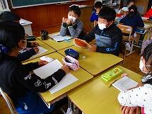 4年生は道徳の授業「絵はがきと切手」です。グループで自分の立場を明らかにして話し合っていました。