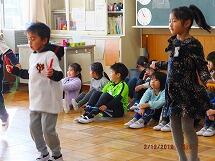 2月20日(水)に、生活科の学習で福寿園へ行きました。高齢者の方々や施設の職員の方々にあたたかく迎えていただきました。はじめに、「Y・M・C・A」のダンスを元気いっぱい踊りました。次は、「栄光の架け橋」の歌を歌いました。高齢者の方から、たくさんの手拍子をいただき、中には、感動の涙を流してくださった方もいらっしゃいました。その後は、おりがみ・あやとり・お手玉で一緒に遊ぶことができました。おはなししたり、折り紙の折り方を教えたりして交流することができました。最後に、アンコールがかかり、「Y・M・C・A」を踊って元気にあいさつをして学校にもどりました。とても楽しいひとときとなりました。