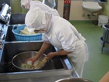 安心安全な給食を作るため、学校薬剤師による給食室の衛生検査が学期毎に年3回行われています。食器洗浄状況や消毒保管状況などを検査していただきました。これからも衛生面には十分気をつけておいしい給食づくりに励みたいと思います。