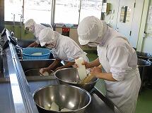 また、モロは、海のない栃木県で昔から食べられている魚です。調理員さんが下味をつけたモロを一切れずつ片栗粉をつけて油で揚げ、栃木県産ニラ入りの甘酢あんを上からかけました。