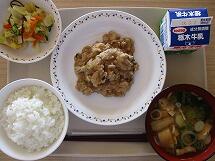 今日の給食のメニューは、「ごはん 牛乳 豚肉のみぞれ煮 昆布漬け 豆腐と小松菜のみそ汁」でした。
