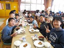 小学6年生にとって、今日が小学校で最後の給食の日ですね。調理員さんも楽しい給食の思い出ができるよう、心をこめて給食を作ってくれました。6年間の給食を思い出しながら、みんなで楽しく食べましょう。中学校に進学しても、給食をもりもり食べて、元気に過ごして下さい。ご卒業おめでとうございます。