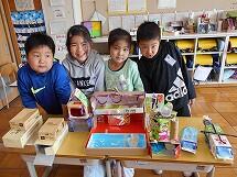 図工「ゆめのまちさんちょうめ」で、自分の作りたい家やお店などの建物を作りました。