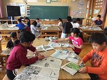 4月19日(金)、図工の時間に新聞紙やちらしをできるだけ長く切って、図工室を楽しく飾りました。ちょっとのはずみで切れてしまう新聞紙。なかなか長く切ることが難しかったようですが、中には一枚の新聞紙から1本の長~~~い紙を切り出すことができた子もいました。