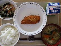 今日の給食のメニューは、「ごはん 牛乳 白身魚フライ 海草サラダ 味噌ビーフンスープ」でした。
