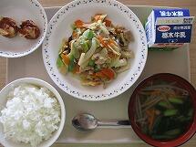 今日の給食のメニューは、「ごはん 牛乳 八宝菜 揚げシュウマイ もやしの中華スープ」でした。