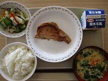 今日の給食のメニューは、「ごはん 牛乳 栃木市産豚肉のねぎ味噌焼き 昆布漬け にら玉汁」でした。