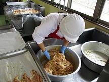 じめじめとした梅雨の時期は、食中毒の原因となる菌が増えやすく、食事の衛生管理には特に気をつけなければなりません。給食を作る調理員さんは、清潔な白衣を着て、マスクで鼻と口をおおい、帽子の中に髪の毛を全部しまいます。手洗いも一日に何回も石けんをよく泡立てて、指の間までていねいに洗っています。みなさんも、給食当番の身支度や、手洗いなどをしっかり行いましょう。