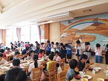 じめじめとした梅雨の時期は、食中毒の原因となる菌が増えやすく、食事の衛生管理には特に気をつけなければなりません。給食を作る調理員さんは、清潔な白衣を着て、マスクで鼻と口をおおい、帽子の中に髪の毛を全部しまいます。手洗いも一日に何回も石けんをよく泡立てて、指の間までていねいに洗っています。みなさんも、給食当番の身支度や、手洗いなどをしっかり行いましょう。
