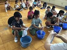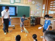 ほうきやちりとりの使い方、雑巾の絞り方や机の拭き方等を丁寧に教えて頂きました。これからの学校の清掃や家庭でのお手伝いに活かしていけると良いですね。