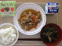 今日の給食のメニューは、「ごはん 牛乳 手作りじゃこふりかけ 肉じゃが 小松菜と生揚げのみそ汁」でした。