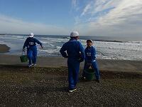 朝の海岸をみんなで散策し、海のすばらしさを感じました。高波の影響で、漂着物が多く打ち上がっていました。