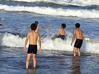 砂浜の特性を利用した波鬼ごっこや潮くみリレーを通して、運動の楽しさに触れるとともに、友達と仲良く活動しました。