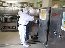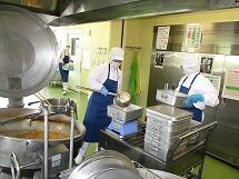 2学期最初の給食です。久しぶりの給食を楽しみにしている子供達のために、給食室では7名の調理員さんが腕をふるってくれています。