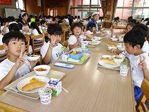 おいしそうに給食を食べている子供達の様子をご覧下さい。
