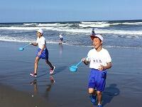 朝の海岸をみんなで散策し、海のすばらしさを感じました。高波の影響で、漂着物が多く打ち上がっていました。