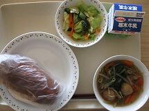 今日の給食のメニューは、「ミニ米粉パン 牛乳 野菜かき揚げ いそかあえ 煮込みうどん」でした。