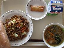 今日の給食のメニューは、「コッペパン 牛乳 焼きそば 春巻き もやしの中華スープ」でした。