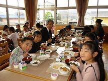 また、今日は大川栃木市長が来校し、子供達と会食を楽しみました。市長からは台風19号で被災された方々へ贈った義援金のお礼や、市長自身も吹上中出身であること、千塚地区で収穫された宮ねぎのことなどのお話がありました。給食中は「何が好きなの?」「カレーが好きです」といった会話を楽しみました。これからも自然のめぐみを大切にし、郷土に対する愛着を深めていきたいですね。